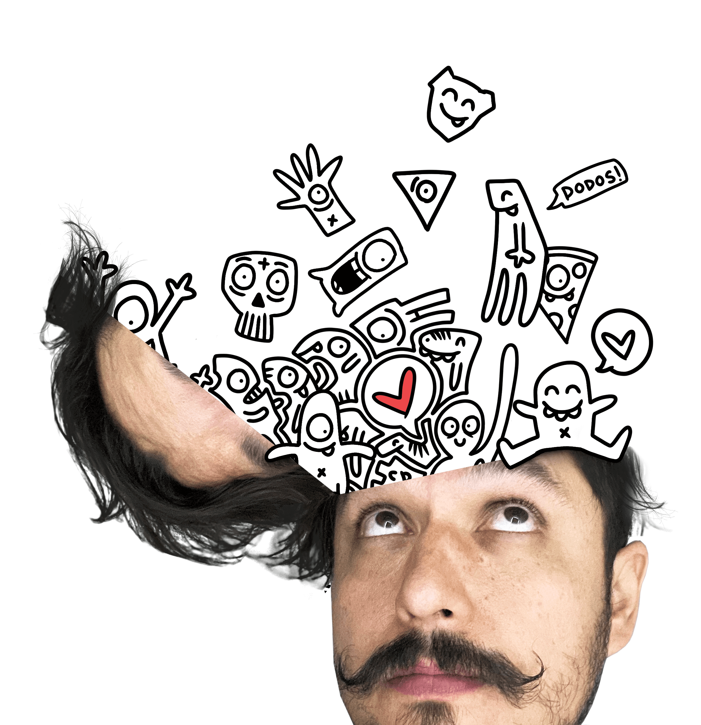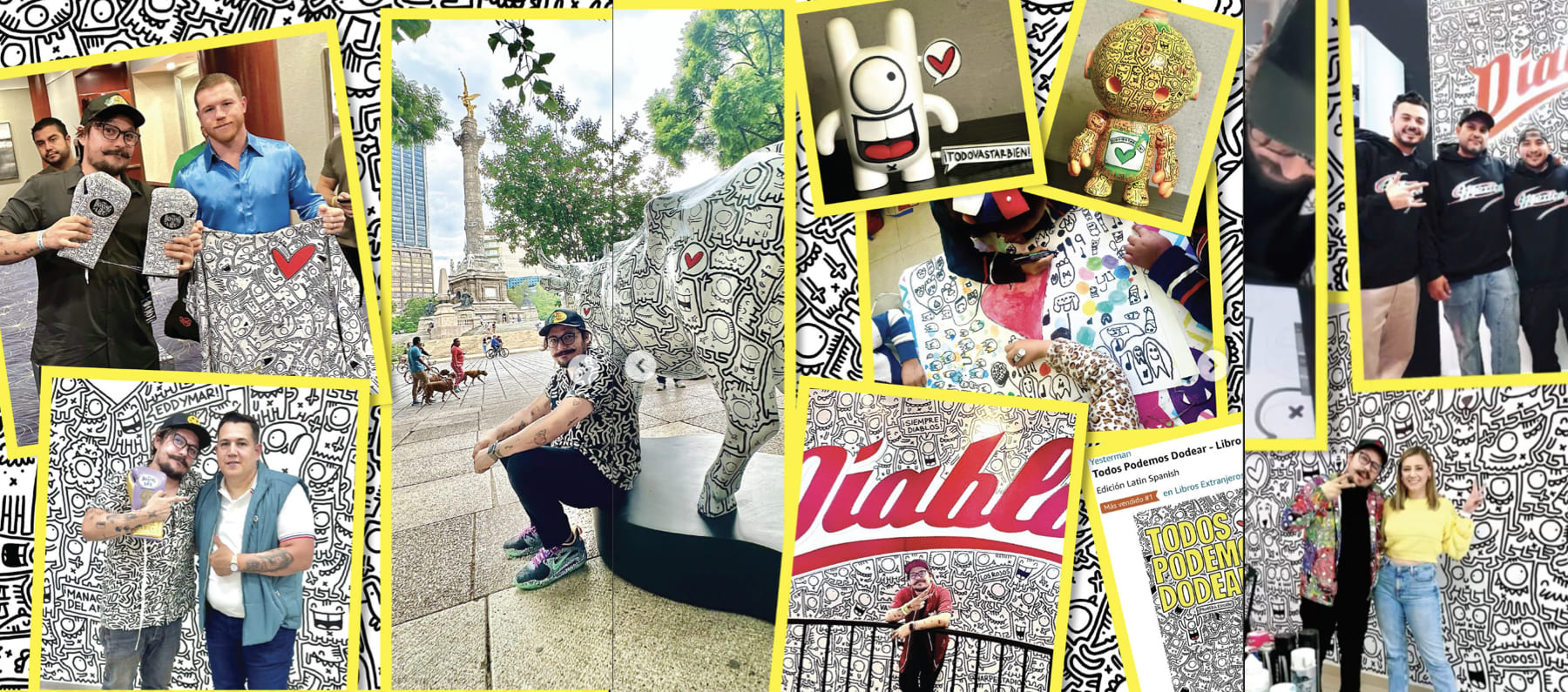 Siempre fui muy fanático de los doodles y crecí admirando muchísimo el trabajo de Keith Haring, así que por ahí del 2017 más o menos, inicié a dibujar en un cuaderno, doodles con formas extrañas a los cuales bauticé desde el primer día como “Dodos”, haciendo un juego de palabras con la abreviación sonora de “Doodles” y la palabra “Dada” corriente artística que me gusta mucho. Así nacieron los Dodos y desde entonces no he dejado de dibujarlos, al hacerlo dejo de pensar y en mi cabeza se vuelven una transformación positiva de todo lo negativo (u obscuro) que pueda haber aquí arriba. Con el tiempo han ido evolucionando hasta convertirse lo que son hoy en día, pero seguramente seguirán cambiando, para ayudarme a seguir contando historias y recordarme que TODOVASTARBIEN.